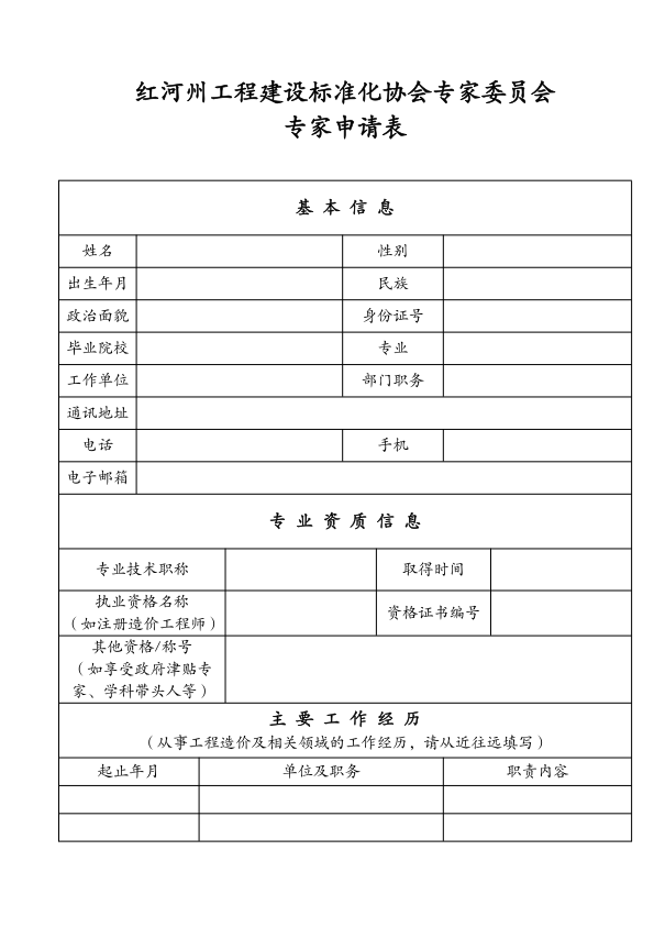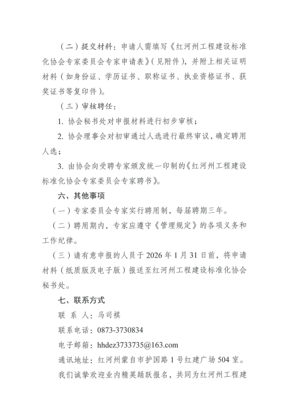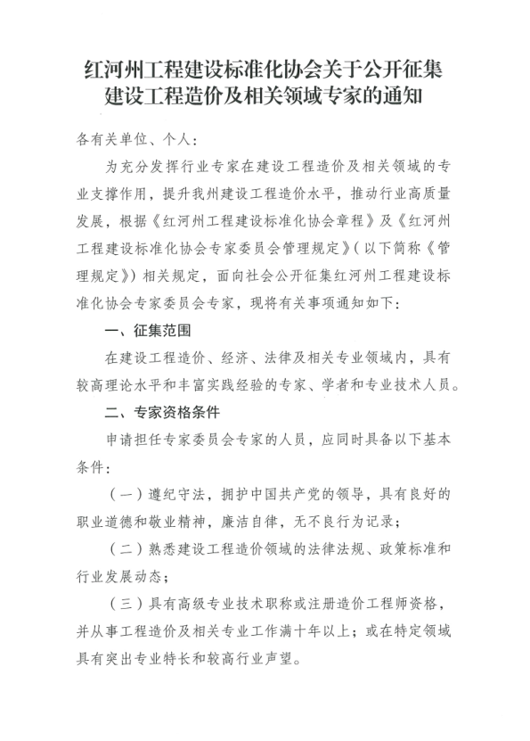 红河州工程建设标准化协会关于公开征集建设工程造价及相关领域专家的通知